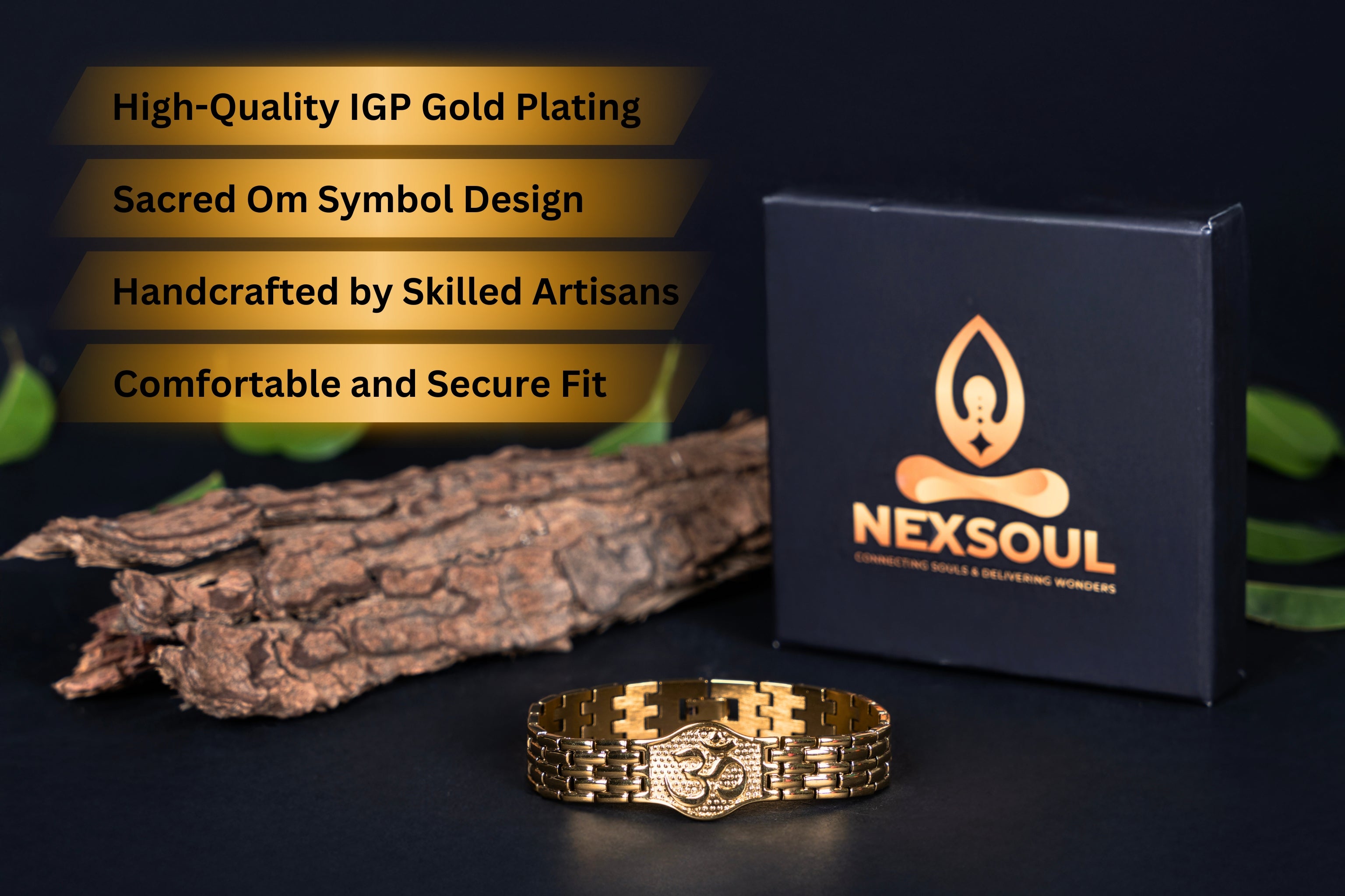 With Nexsoul, you’re not just purchasing a bracelet; you're embracing a piece of spiritual heritage. Our Gold Plated Om Bracelet for Men is more than just an accessory – it’s a statement of faith, style, and commitment to quality. Join us in supporting local artisans and enjoy the elegance and spiritual benefits of our carefully crafted Om bracelet.