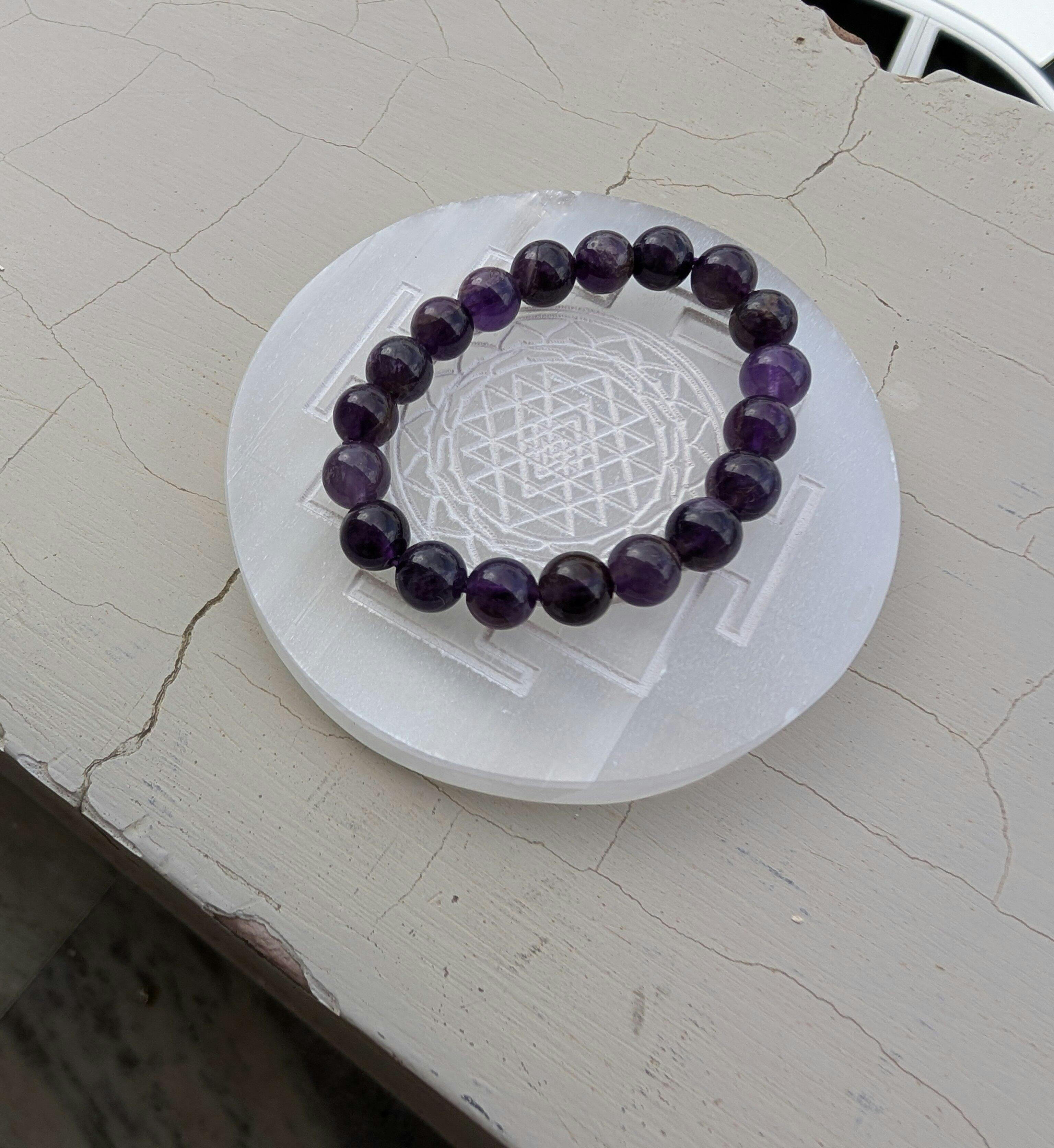 Place your crystals, bracelets, or energy tools on the plate to recharge and cleanse them.